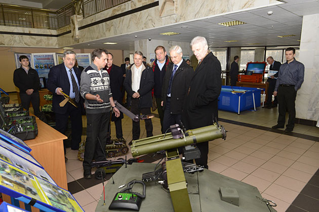 Начальник отдела Кудряшов В. Б. представляет гостям одну из последних разработок отдела - МРК «Верхолаз».